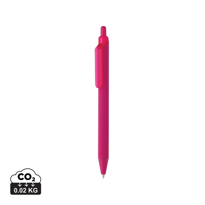 Egyedi kialakítású, egy nyakkendőt viselő tollra emlékeztet, ha jobban megnézzük a klipszet és a tollszárat. A 91% újrahasznosított ABS-ből készült toll a tartósságot és a stílust ötvözi. Sima, gumírozott szilikon markolattal a tollszár körül a további kényelem érdekében ezáltal is biztosítva a prémium írásélményt. A dugattyú, a klipsz és a tollhegy matt bevonata elegáns megjelenést kölcsönöz, míg a kék tinta egyenletesen írást biztosít akár 1200 méterig. A könnyű használat érdekében kattanó mechanizmussal működik.