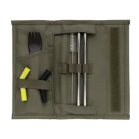 A Tierra 2 db-os szívószál és evőeszköz készlet többször használatos ezáltal ideális a műanyagfelhasználás csökkentéséhez. A szett tartalma 2 rozsdamentes acélból készült szívószál tisztítókefével, kanálként és villaként is használható evőeszközzel valamint 2 hajlított, szilikon szívószállal melyek a rozsdamentes acél szívószál végére rögzíthetőek a még kényelmesebb használathoz. Különböző színűek ezáltal könnyen meg is különböztethetőek. Tartóban érkezik Velcro tépőzáras záródással. Külseje 100% 600D poliészter, belseje 100% 210 D poliészter. PVC-mentes.