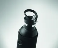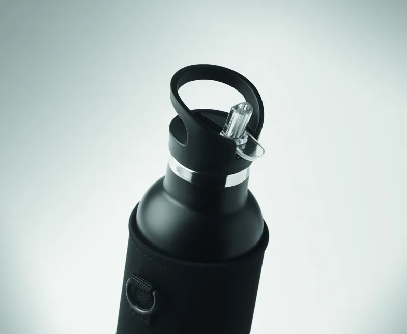 Rozsdamentes acél termosz szivárgásmentes csavaros kupakkal és egy további cserélhető beépített ivórészes kupakkal. Neoprén hordtáskával szállítjuk. Űrtartalom: 700 ml.