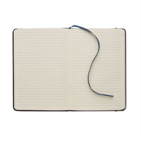 A5 jegyzetfüzet, füstös mintázatú, 40% fogyasztás utáni újrahasznosított PU és 60% PU, keménytáblás borítóval. Cérnafűzött. 160 vonalas oldal (80 lap) 70 g/m² újrahasznosított papírból. Illeszkedő színű elasztikus zárópánt és könyvjelző szalag.