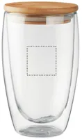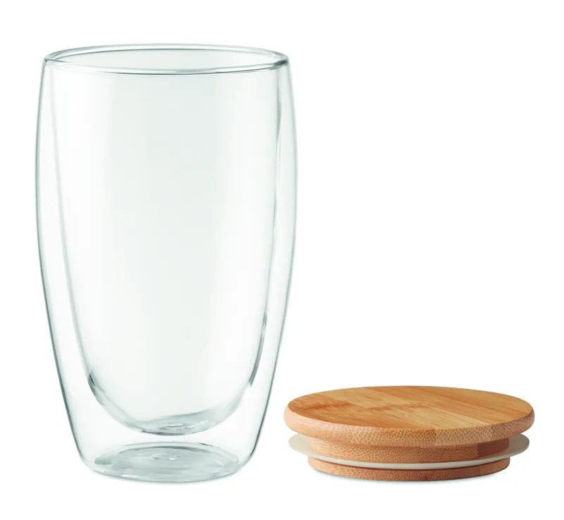 Duplafalú, boroszilikát üvegből készült pohár, bambusz fedéllel, szilikon tömítőgyűrűvel. Űrtartalom 450 ml. A bambusz természetes anyag, színében, mintázatában és méretében esetenként eltérő lehet.