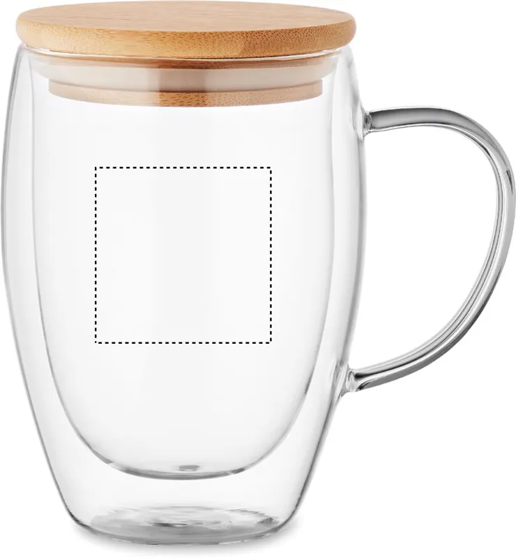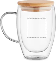 Duplafalú boroszilikát üveg bögre bambusz fedéllel. Űrtartalom: 350 ml.