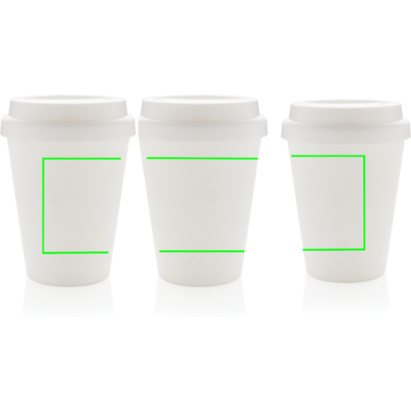 Használja többször! Vigye magával saját bögréjét a környezettudatosság jegyében bolygónk védelméért! Duplafalú ezáltal hosszabb ideig tartja melegen a benne lévő italt. 100% újrahasznosítás-barát PP anyagból készült valamint 100 Celsius fokig élelmiszerbiztonságilag jóváhagyott. Csavarható tetővel, kizárólag kézi mosás ajánlott. Űrtartalma: 300 ml.