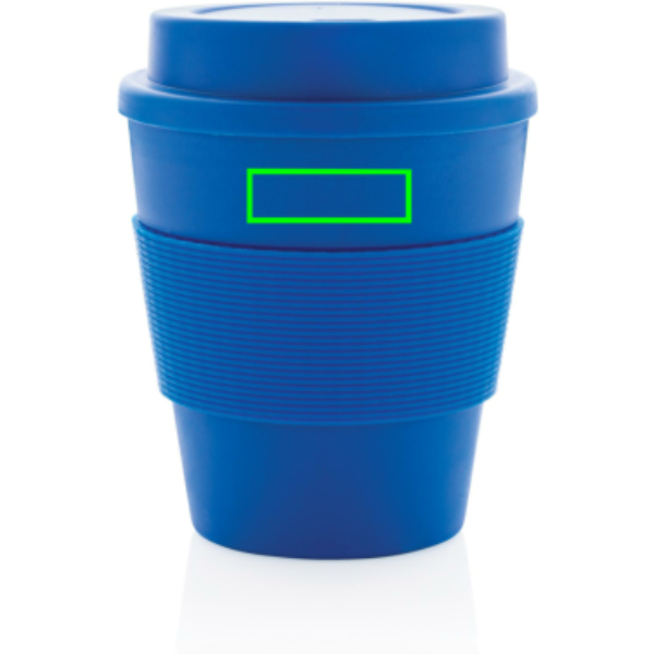Használja többször! Vigye magával saját bögréjét a környezettudatosság jegyében bolygónk védelméért! Ez a könnyű, időtálló bögre 100% újrahasznosítás-barát PP anyagból készült valamint 100 Celsius fokig élelmiszerbiztonságilag jóváhagyott. Rácsavarható tetővel és szilikon fogórésszel. Űrtartalma: 350 ml.