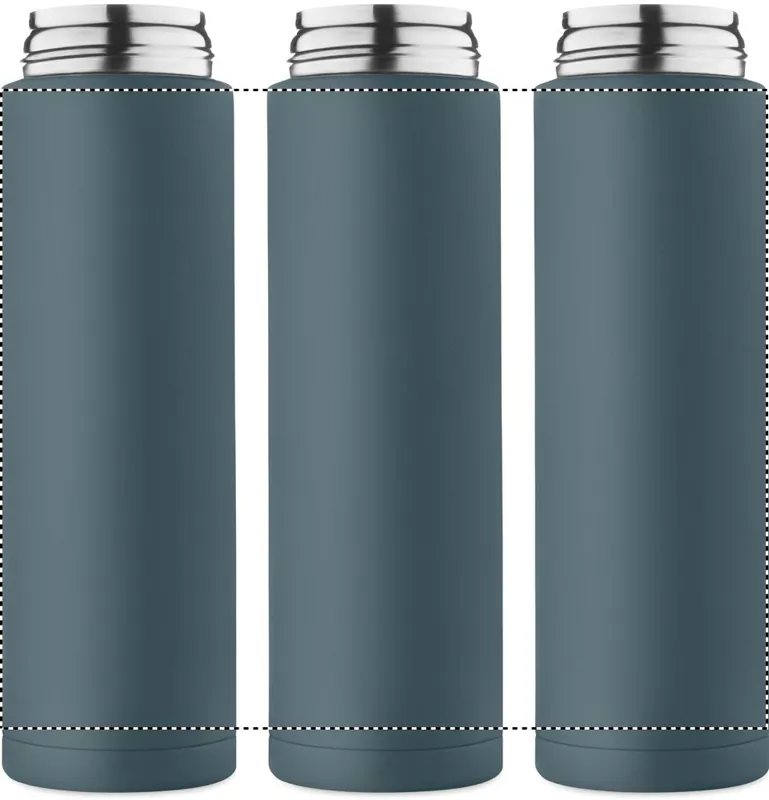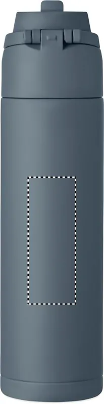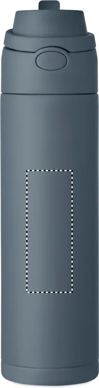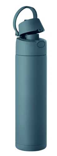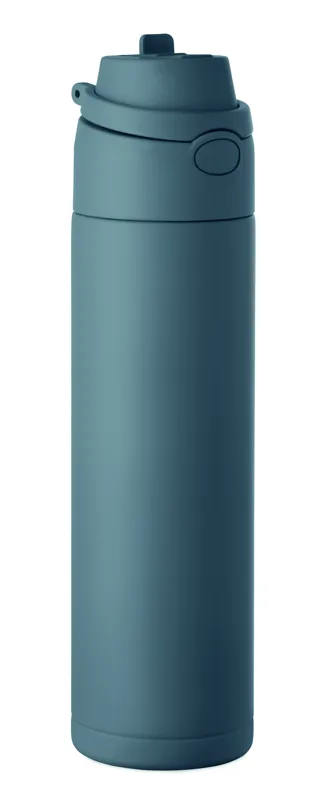 Szimplafalú palack 90% újrahasznosított rozsdamentes acélból és 10% rozsdamentes acélból, 2 az 1-ben szívószálas és ivónyílásos PP fedéllel, fogantyúval. Szivárgásmentes. Űrtartalom: 650 ml.