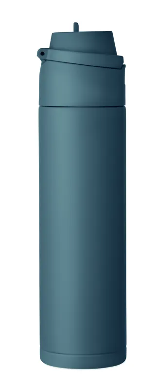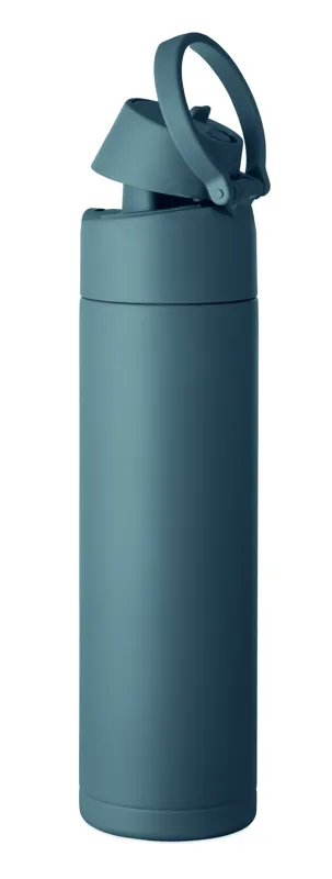Duplafalú termoszpalack 90% újrahasznosított rozsdamentes acélból és 10% rozsdamentes acélból, 2 az 1-ben szívószálas és ivónyílásos PP fedéllel, fogantyúval. Szivárgásmentes. Űrtartalom: 500 ml.