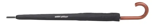 Automata, szélálló, 8 paneles, fekete-szürke csíkos esernyő fa fogantyúval, fém nyéllel és üvegszálas vázzal. Márkajelzéssel ellátott tokban szállítjuk. André Philippe márkatermék. Anyaga: 190T pongee.