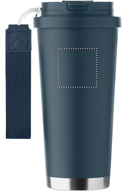 Duplafalú, újrahasznosított rozsdamentes acél (90% újrahasznosított rozsdamentes acél és 10% rozsdamentes acél) pohár, PP fedéllel (2 az 1-ben ivónyílással és szívószálas fedéllel) és RPET hordszíjjal. Szivárgásmentes. Űrtartalom: 500 ml.