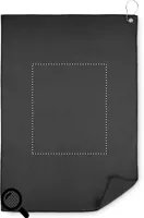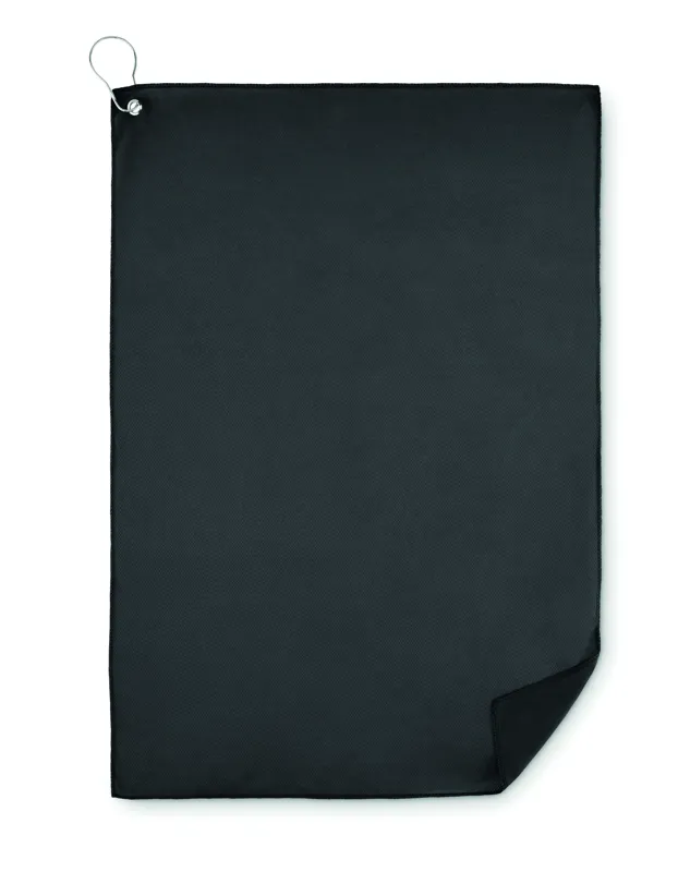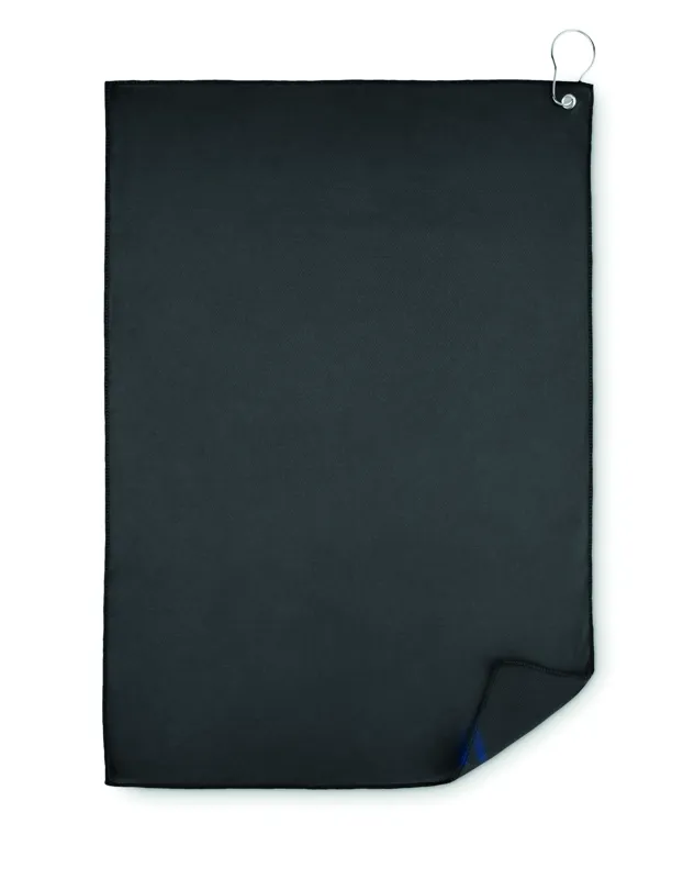 RPET poliészter golftörölköző fém karabineres akasztóval. Törölköző mérete: 40x60cm.