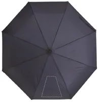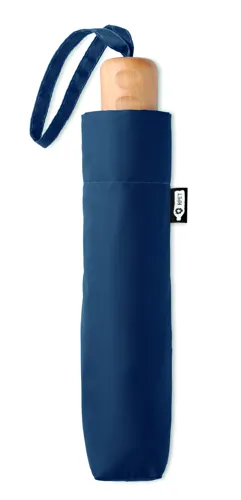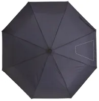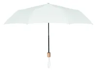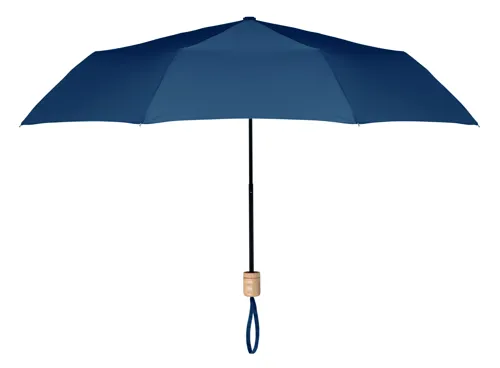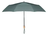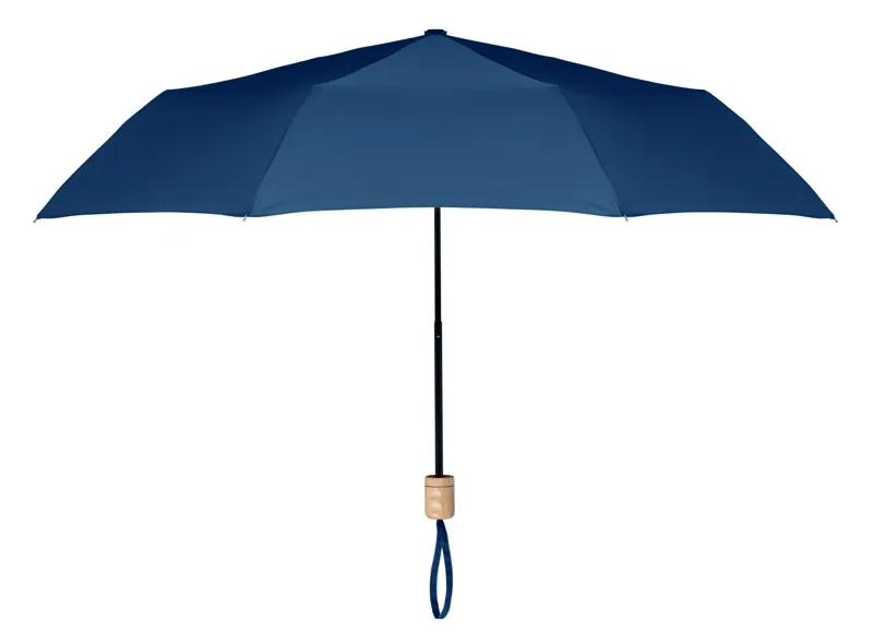 21 colos, 3 szakaszos összecsukható esernyő 190T RPET nyersselyem anyagból, fekete festett fém vázzal, fa markolattal. Kézi nyitás és záródás. Azonos anyagból készült tokban szállítjuk.