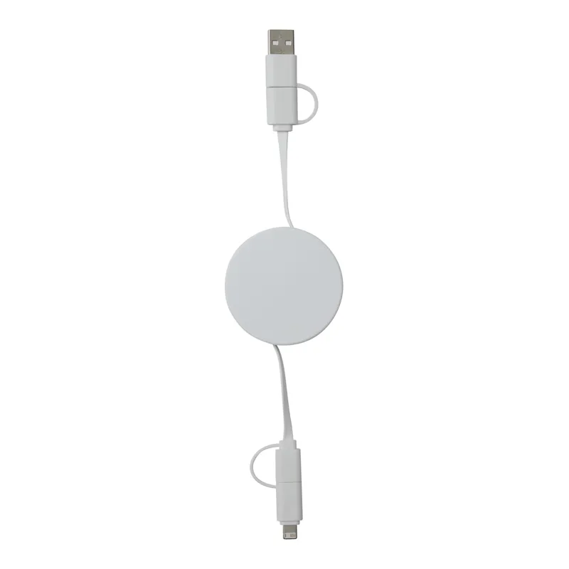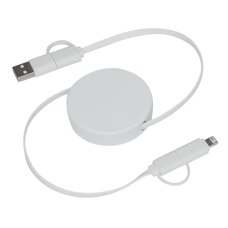 TRANSFER ROUND töltő- és adatátviteli kábel: visszahúzható (hossza kb. 92 cm), elektronikus eszközök töltésére, beleértve a laptopokat (65 W-os teljesítmény), valamint adatátvitelre, kombinált USB-típussal- A / Type-C bemeneti csatlakozó és kombinált USB-C / Micro-USB / Lightning® kimeneti csatlakozó