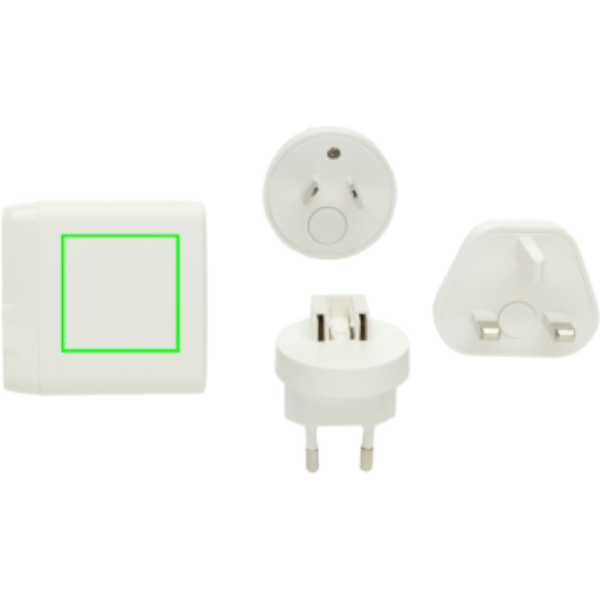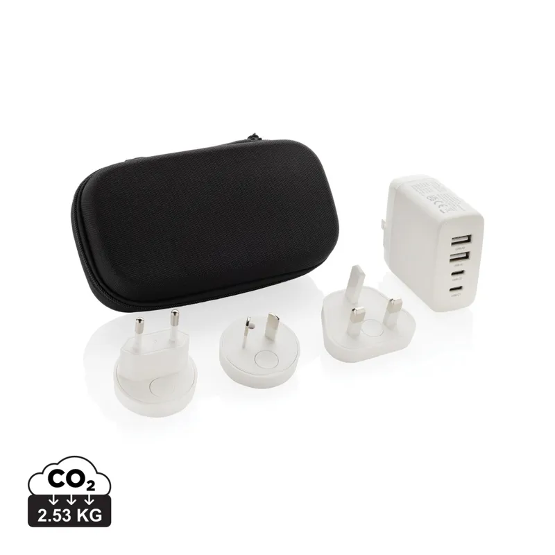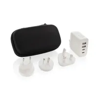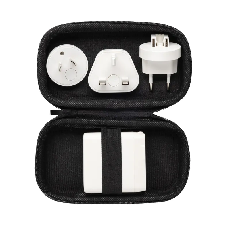A Travelcharge Pro segítségével bárhol töltheti a készüléket. 2 USB-C és 2 USB-A porttal, hogy bármilyen mobileszközt tölthessen, amit magával visz az utazásai során. Integrált US csatlakozóval és további EU, UK és AUS csatlakozóval a világ több mint 100 országában történő töltéshez. Maximális kimenet: 5 V/3 A. Bemenet: AC100-240 V. Kényelmes utazótasakban, így bármilyen helyre magával viheti. Újrahasznosított ABS-ből készült. Teljes újrahasznosított anyagtartalom: 57% a termék összsúlya alapján. Az RCS-tanúsítvány biztosítja az újrahasznosított anyagok ellátási láncát. PVC-mentes. FSC® mix csomagolásban.