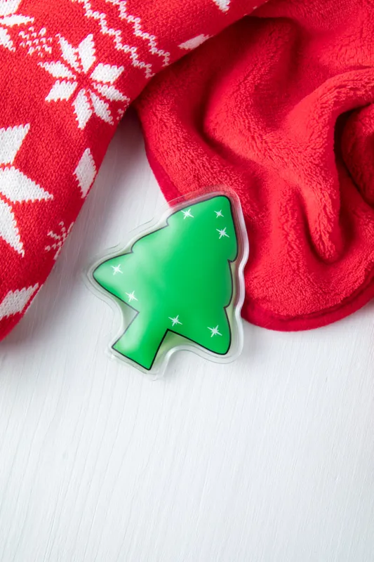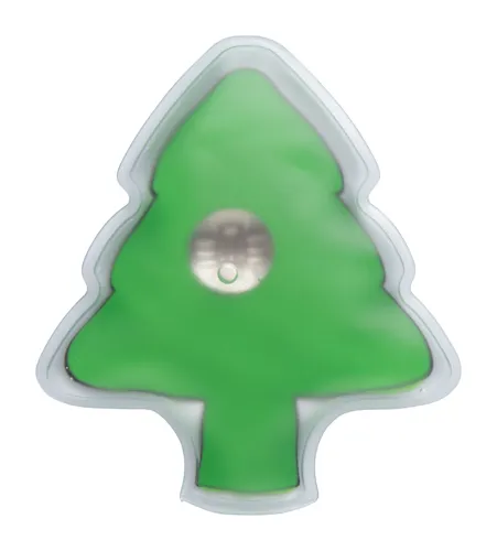 Karácsonyfa alakú, többször használható melegítő tasak.
