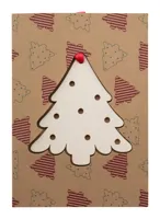 Egyedi grafikával, kraft papírból készült, mindkét oldalán emblémázható karácsonyi üdvözlőlap cellulóz lemezből készült karácsonyfadísszel piros szalagon. C6 borítékkal szállítjuk. Minimum rendelési mennyiség: 100 db.