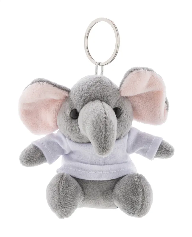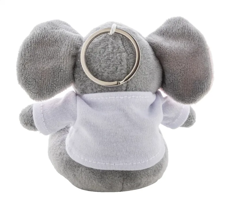Plüss elefánt kulcstartó nyomtatható pólóval.