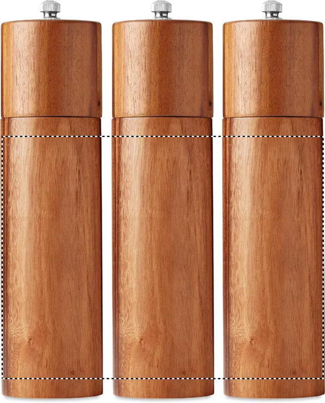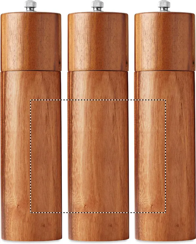 Borsőrlő akáciafából. Rozsdamentes acélból és kerámiából készült mechanizmus.