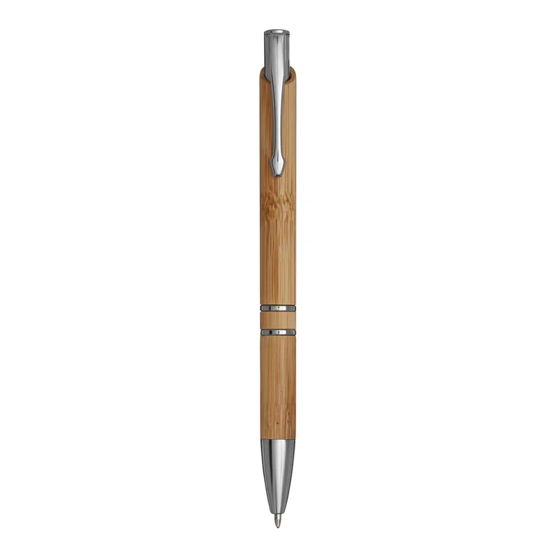TUCSON BAMBOO golyóstoll: kívül bambusz borítás, nyomógombos mechanizmus, kék tintával