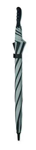 30 colos, manuális nyitású és záródású, szélálló esernyő 4 panelen 190T nyersselyemből és 4 panelen fényvisszaverő anyagból, üvegszálas vázzal, bordákkal és rúddal. Egyenes ABS markolat gumiborítással.