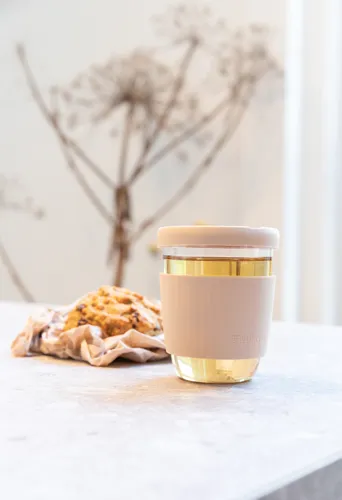 Ukiyo boroszilikát üvegpohár szilikon fedéllel és tokkal Barna