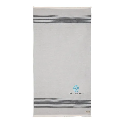 Ez a könnyű, nagy nedvszívó képességű, homokálló és gyorsan száradó törölköző az egyik legjobban fenntartható törölköző a piacon. A hammam törölközők multifunkcionálisak: piknikhez, babatakaróként, jóga-, strand- és edzőtermi törölközőként is használhatóak, vagy akár asztalterítőként is. Vékony anyagának köszönhetően könnyen hordozható. 12% újrahasznosított pamutból készül, mely puha és selymes tapintást kölcsönöz. AWARE™ nyomjelzővel, amely igazolja az újrahasznosított anyagok valódi használatát. Minden eladott termék után 2%-kal támogatjuk a Water.org nonprofit szervezetetl. Mosógépben mosható. Portugáliában készült.