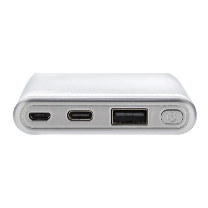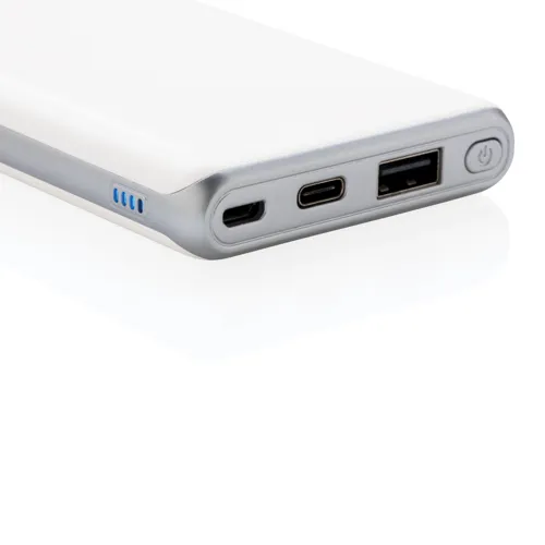 Modern, 10 000 mAh powerbank a létező leggyorsabb töltési sebességgel. ABS anyagból. A C-típusú csatlakozó ún. power delivery funkcióval rendelkezik, melynek segítségével iPhone és Macbook tölthető a leggyorsabb sebességgel. Rendelkezik emellett USB csatlakozóval is. Micro USB bemenete: 5V/2A. Kimenete: 5V/3A, 9V/2A, 12V/1.5A. C-típusú bemenete: 5V/2A, 9V/2A. C-típusú kimenete: 5V/3A, 9V/2A, 12V/1.5A.