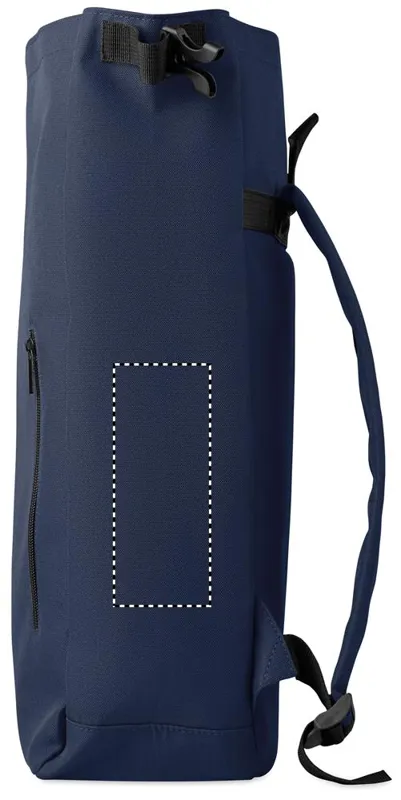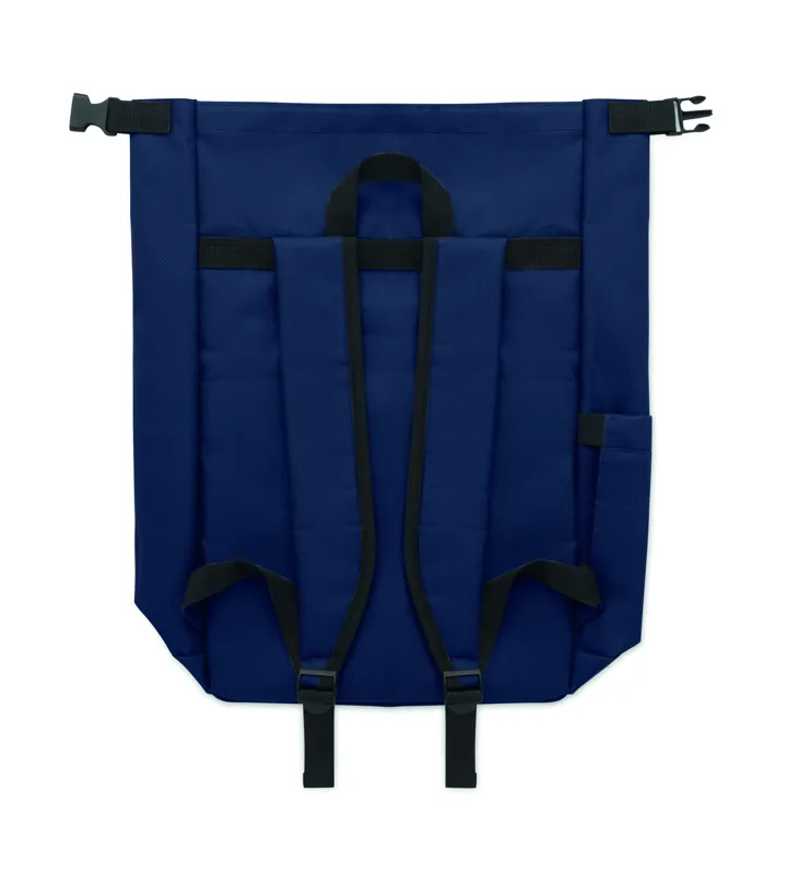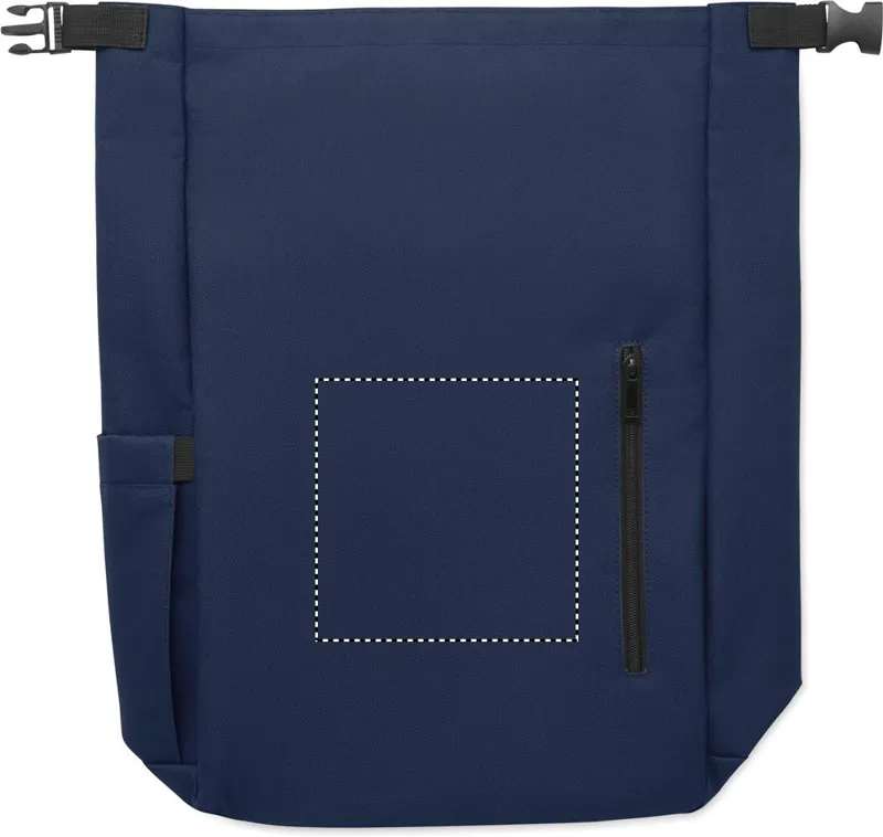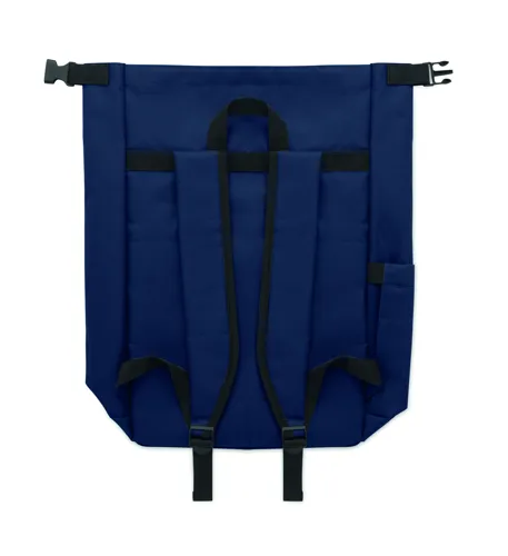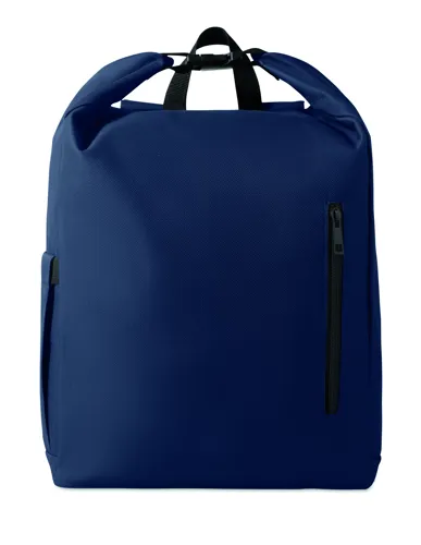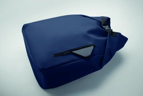 15 colos, csavart záródású rolltop laptop hátizsák 600D RPET poliészterből, párnázott 210D RPET béléssel. Cipzáras elülső zsebbel, rugalmas oldalzsebbel és állítható vállpántokkal.