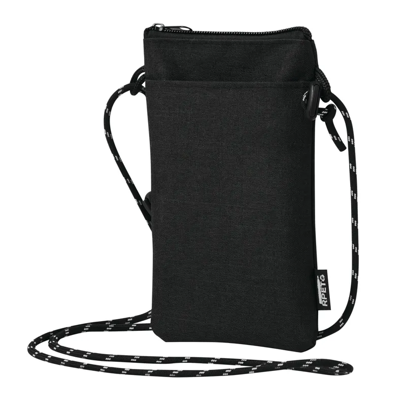 URBAN keresztpántos telefontartó: univerzális tok okostelefonokhoz, cipzáras fő rekesz, 1 becsúsztatható zseb az elején, újrahasznosított poliészterből (rPET) készült, állítható vállpánttal (hossz kb. 140 cm)