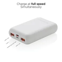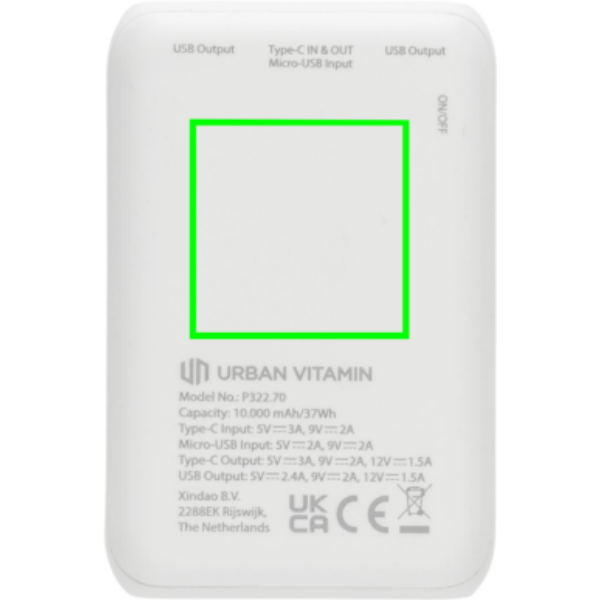 Ezzel a gyors powerbankkel akár 2,5-szer gyorsabban töltheti telefonját. Az ultragyors C típusú 18W-os PD portnak köszönhetően a powerbank rekord idő alatt újratölthető. A telefon 50%-os feltöltése mindössze 30 percet vesz igénybe. A lassú töltés a múlté. A powerbank hosszú élettartamú, A-fokozatú, 10 000 mAh akkumulátort tartalmaz, amellyel minden eszközt feltölthet utazásai és kalandjai során. A dupla USB A és C típusú csatlakozó lehetővé teszi akár 3 eszköz egyidejű töltését. Az Urban Vitamin termékek PVC nélkül készülnek, csökkentett műanyagtartalmú csomagolásban. C típusú bemenete: 5V/3A, 9V/2A; Micro USB bemenete: 5V/2A, 9V/2A; C típusú kimenete: 5V/3A, 9V/2A, 12V/1.5A; USB kimenete: 5V/2.4A, 9V/2A, 12V/1.5A