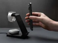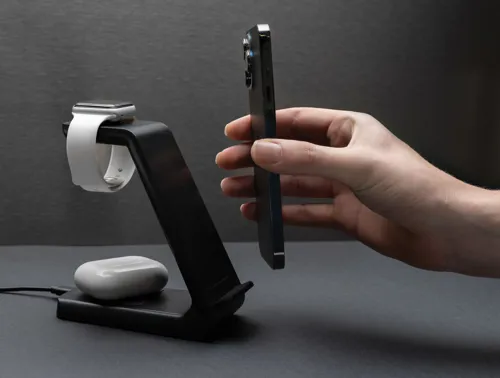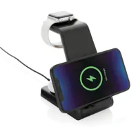 15W-os 3 az 1-ben vezeték nélküli töltőállvány RCS (Recycled Claim Standard) újrahasznosított ABS-ből. Teljes újrahasznosított anyag tartalom: 60% a termék összsúlya alapján. Az RCS-tanúsítvány biztosítja az újrahasznosított anyagok ellátási láncát. Ez a vezeték nélküli töltő a lehető leggyorsabban tölti fel telefonját. Dupla tekercses 15W vezeték nélküli töltővel, hátul 5W-os vezeték nélküli töltővel és felül egy 3W-os iWatch töltővel. 120 cm-es C típusú töltőkábellel RCS újrahasznosított TPE-ből. Az Urban Vitamin termékek PVC nélkül készülnek és csökkentett műanyag csomagolásban érkeznek. Bemenete: 5V/3A, 9V/2A 5V/1A, 9V/1,1A.