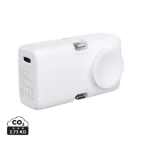 Hordozható áramforrás a zsebben! Könnyű, de nagy teljesítményű 5000 mAh-s powerbank. Kettős töltési lehetőséggel az integrált iOS csatlakozón (iPhone 14 és régebbi készülékekhez) és a legmodernebb C típusú kimeneten keresztül. Töltse telefonját anélkül, hogy bármilyen kábelt magával kellene vinnie! Integrált óratöltővel az összes legújabb Apple Watch modell töltéséhez. Egyszerre akár két eszközt is tölthet! Integrált állvánnyal, hogy filmnézés vagy zenehallgatás közben is tölthesse telefonját. RCS újrahasznosított ABS-ből és újrahasznosított PC-ből készült. Teljes újrahasznosított anyagtartalom: 24% a termék összsúlya alapján. Az RCS-tanúsítvány biztosítja az újrahasznosított anyagok ellátási láncát. PVC-mentes. Műanyagcsökkentett csomagolásban.