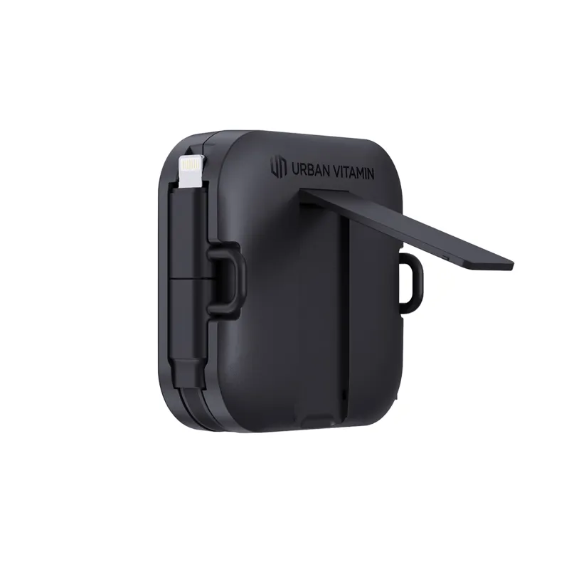 A tökéletes, minden az egyben töltési megoldás. 100 W-os telefonállvány, amely integrált, kihúzható töltőkábellel rendelkezik és szupergyors teljesítményt és kényelmet biztosít. Mágneses telefonállványával és támasztékával biztonságosan és a megfelelő szögben támasztja meg a telefont a kihangosított használathoz. A kihúzható RTPE kábel akár 100 cm-ig nyúlik és szupergyors töltést kínál, támogatva akár 100 W-os energiaellátást az USB-C - USB-C kábellel. USB-A - USB-C és USB-A - iOS csatlakozókkal, így elég sokoldalú ahhoz, hogy az eszközök széles skáláját töltse. Ezenkívül támogatja az adatátvitelt a zökkenőmentes fájlszinkronizálás érdekében töltés közben. RCS (Recycled Claim Standard) RABS és RTPE anyagokból készült. Teljes újrahasznosított anyagtartalom: 59% a termék összsúlya alapján. Az Urban Vitamin termékek PVC-mentesek. Csökkentett műanyagtartalmú csomagolásban.
