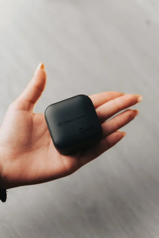 Ismerje meg a legfejlettebb 70 W-os töltőt, amit csak kívánhat. 70 W-os PD GAN töltő EU, USA, UK csatlakozóval, amely egy szupergyors C típusú porttal és egy további USB-A porttal rendelkezik a tökéletes sokoldalúság érdekében. A GAN egy új töltési technológia, amely lehetővé teszi a nagy teljesítményű adapterek sokkal kisebb méretét, kevesebb hőt, így sokkal biztonságosabb, és nagyobb energiahatékonyságot, így kevesebb energia vész el a töltési folyamat során. Bármilyen eszközt teljes sebességgel tölt, még a laptopokat is RCS (Recycled Claim Standard) újrahasznosított tűzálló PC-ből készült. Teljes újrahasznosított anyagtartalom: 19% a termék összsúlya alapján. Az Urban Vitamin termékek PVC-mentesek. Csökkentett műanyagtartalmú csomagolás.