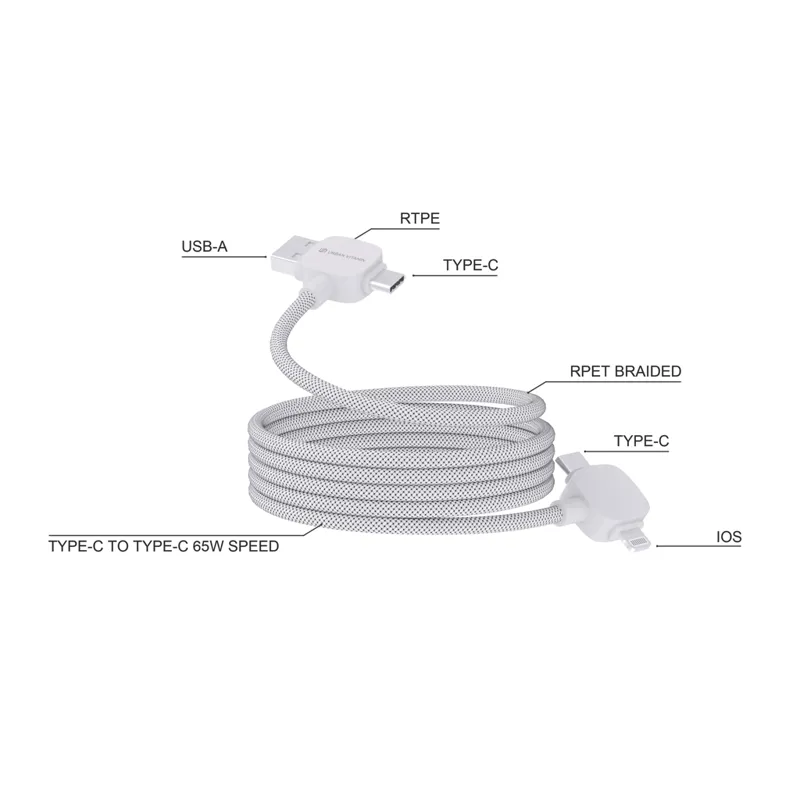 Urban Vitamin Stockton 65W újrah. TPE/PET mágneses kábel Fehér