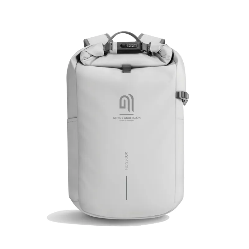 Az új Urban lopásbiztos hátizsák ideális útitárs, amely biztonságot és kényelmet nyújt. A főrekesz feltekerésével és a megerősített kombinációs zárral történő rögzítésével a hátizsák teljes zárást biztosít, amellyel egy rögzített tárgy köré is rögzíthető. Rejtett zsebek a hátoldalon. Oldalsó vizespalack zsebbel. Belül párnázott rekeszekben elfér egy 16"-es laptop, és hálós zsebekben az alapvető dolgok rendszerezhetők. Aware™ nyomjelző újrahasznosított poliészterből és puha tapintású, vízálló PU bevonattal készült. 11% újrahasznosított anyag tartalom. Bejegyzett dizájn®