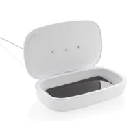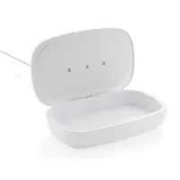 Többfunkciós UV-C fertőtlenítő mely belsejében elpusztítja a baktériumok 99,9%-át. Helyezze bele a fertőtleníteni kívánt tárgyat, mint pl: fülhallgató, ékszerek, óra vagy arcmaszk és használja az UV-C technológiát. Válaszható egy rövidebb, 90 másodperces vagy egy alaposabb, 5 perces program. A 2 UV-C LED lámpa nem mérgező valamint a piacon található számos UV lámpával ellentétben nem tartalmaz higanyt. A doboz kialakításának köszönhetően az UV-C lámpa a doboz kinyitásakor automatikusan lekapcsol ezáltal használója nincs kitéve az UV-C fénynek. A lámpák 10 000 órás élettartamúak. A doboz tetején 5W-os vezeték nélküli töltő található mobilkészüléke töltéséhez. 100 cm hosszú, PVC-mentes TPE C-típusú kábellel. Bemenete: 5V/1.5A, Kimenete: 5/1A - 5W.
