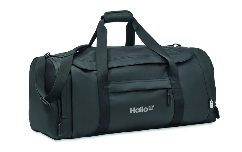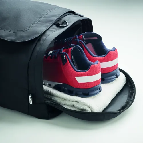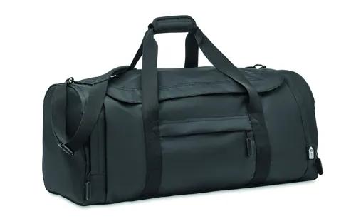 Nagyméretű sport- vagy utazótáska 300D RPET poliészterből. Fő rekesszel, nagy oldalsó hűtő- és tárolórekesszel. Kivehető megerősített alsó rész, állítható és levehető vállpánt.