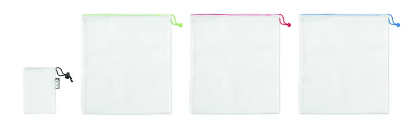 3 RPET bevásárlótasak, RPET tokban. Többször használható, bevásárlásnál kiváltja az eldobható műanyag zacskókat. Húzózsinóros záródással. Mosógépben mosható, BPA mentes, élelmiszer tárolására biztonságosan használható.