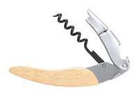 Rozsdamentes acél üvegnyitó és dugóhúzó fa fogantyúval.