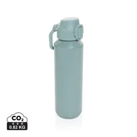 A Via RCS palack tanúsítottan újrahasznosított 304-es acélból készült. Szimpla falú, csavaros és zárható fedelével kiömlésálló. Akár egy kézzel is használható: csak nyomja meg a kortyoláshoz. Kizárólag hideg italokhoz. RCS (Recycled Claim Standard) tanúsított újrahasznosított anyagokból. Az RCS biztosítja az újrahasznosított anyagok ellátási láncát. Teljes újrahasznosított anyagtartalom: 75% a termék összsúlya alapján. BPA-mentes. Űrtartalma: 600 ml.