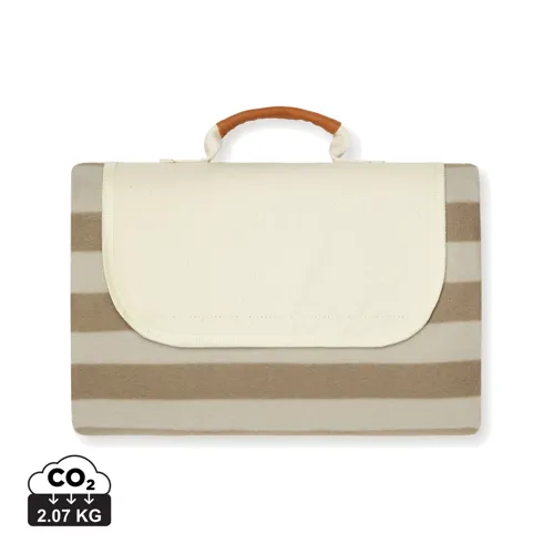 Puha gyapjúból, pamutvászonnal és PU alkotóelemekkel. Az okos konstrukciónak köszönhetően könnyen összehajtható és magával vihető. A gyapjú GRS újrahasznosított PET-ből készül. A hátoldal PEVA-ból készül, amely taszítja a vizet. A GRS (Global Recycled Standard) tanúsítvány garantálja az újrahasznosított anyagok ellátási láncát. A teljes újrahasznosított anyagtartalom a termék összsúlyán alapul. Ez a termék 51% GRS újrahasznosított gyapjút tartalmaz.