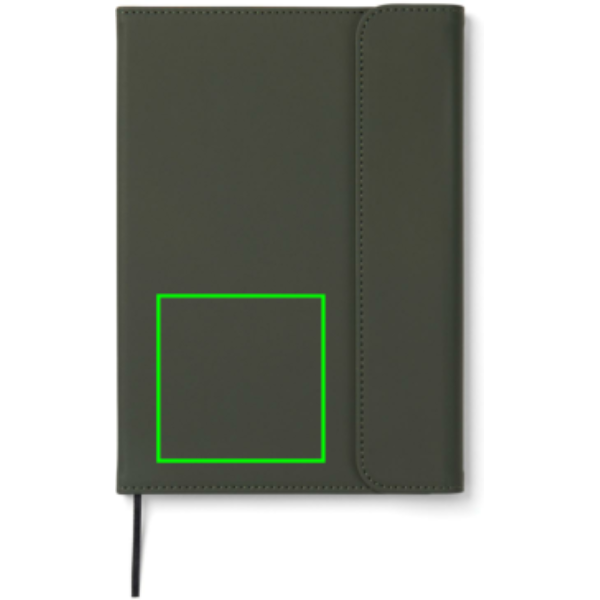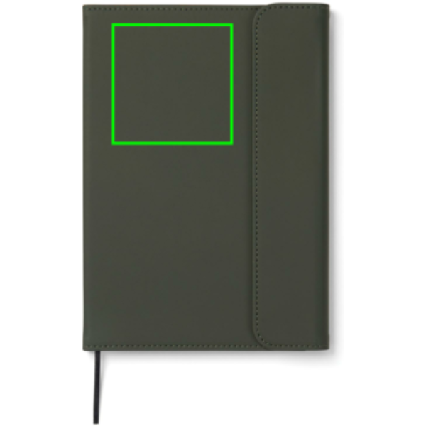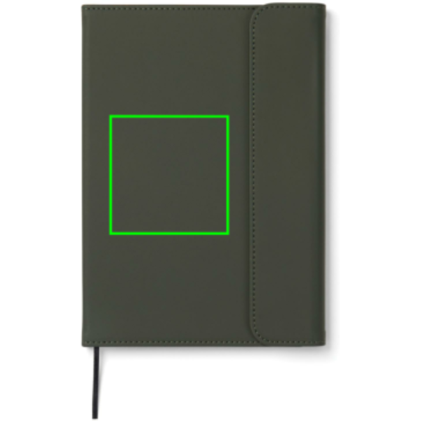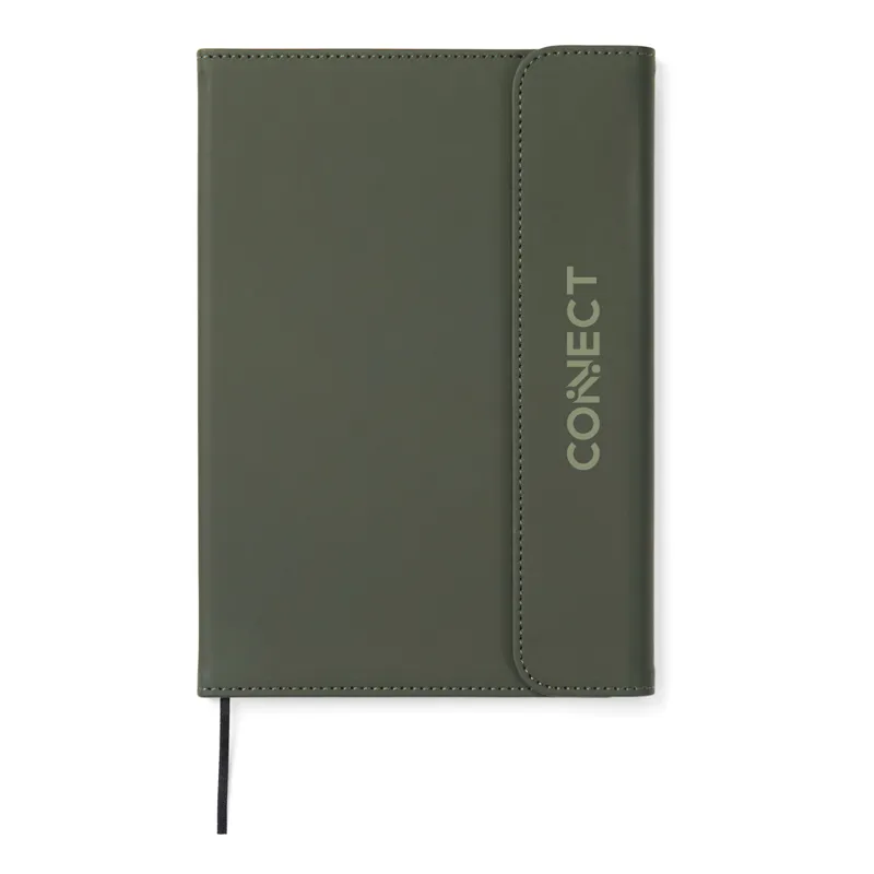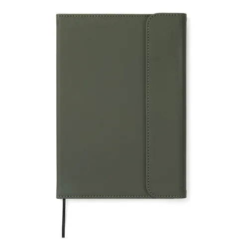 Elegáns, tiszta tapintású, A5-ös jegyzetfüzet. 30% újrahasznosított, matt PU-ból készült borítása mágneses zárral és integrált tolltartóval rendelkezik. 80 lap/160 oldal, 70 gsm súlyú, vonalas, újrahasznosított, belső papírral, amely minden jegyzetelési igénynek megfelel. A papírbetét cserélhető, így hosszabb ideig használható. A GRS (Global Recycled Standard) tanúsítvány garantálja az újrahasznosított anyagok ellátási láncát. A teljes újrahasznosított anyagtartalom a termék összsúlyán alapul. Ez a termék 54% GRS papírt és 5% GRS újrahasznosított PU-t tartalmaz.