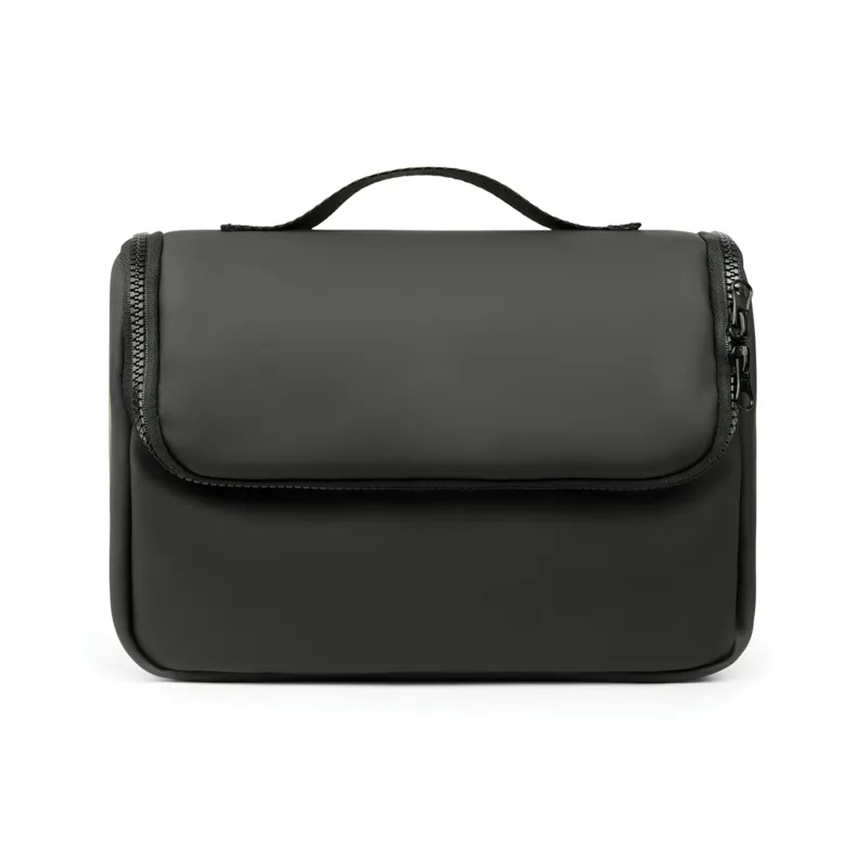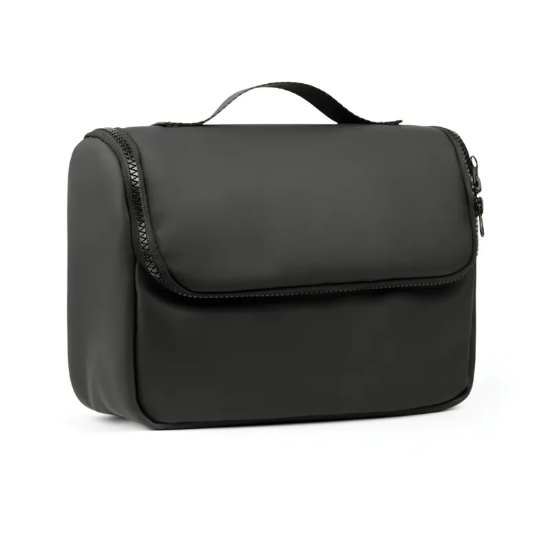 Vízlepergető nubuk-PU anyagú, stílusos és praktikus utazási piperetáska. Anyaga könnyen tisztítható és vízlepergető így utazás közben is tökéletesen használható. A táska belseje a rendszerezés érdekében maximalizált, több zsebbel minden piperecikk számára. Akasztós kialakításának köszönhetően utazás közben könnyen felakasztható.