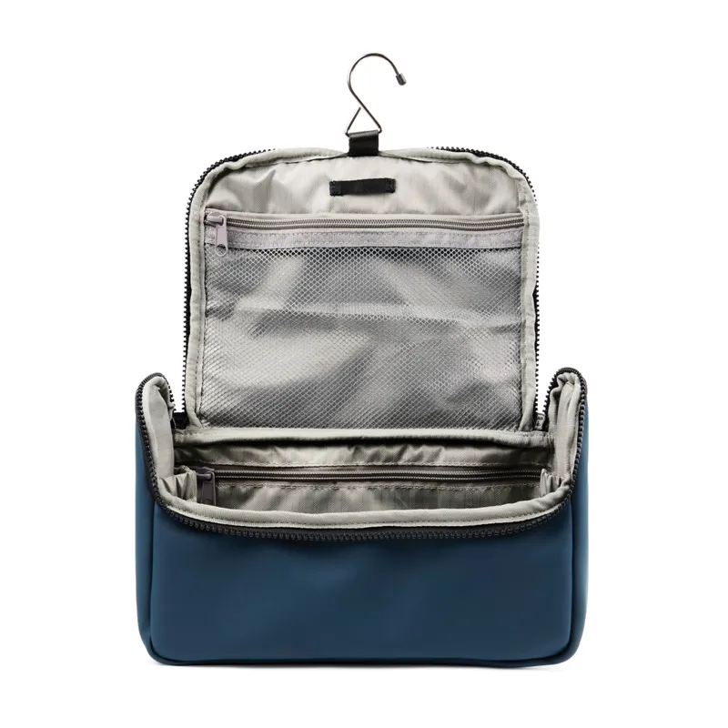 Vízlepergető nubuk-PU anyagú, stílusos és praktikus utazási piperetáska. Anyaga könnyen tisztítható és vízlepergető így utazás közben is tökéletesen használható. A táska belseje a rendszerezés érdekében maximalizált, több zsebbel minden piperecikk számára. Akasztós kialakításának köszönhetően utazás közben könnyen felakasztható.