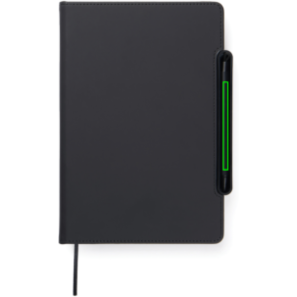 Mindennapi munkavégzést támogató, tökéletes multifunkcionális jegyzetfüzet. Ez az okos 4 az 1-ben megoldás ötvözi a praktikumot, a rugalmasságot és a dizájnt. RCS újrahasznosított papírból készült, klasszikus Baltimore matt PU bevonatú borítóval, amely vizuálisan is vonzó és funkcionális. A mágneses vonalzó vonalzóként és tolltartóként is szolgál. Hozzáillő, kék tintás golyóstollal. A tolltartó könnyen átalakítható a jegyzetfüzet szerkezetébe integrált telefonállvánnyá. A belső rész kényelmes tárolást biztosító kártyatartó zsebekkel és könnyen cserélhető jegyzetfüzet betéttel rendelkezik, amely hosszú élettartamot biztosít. 80 lapból/160 vonalas oldalból áll, így rengeteg helyet biztosít a jegyzetek, tervek és ötletek számára. Tökéletes az üzleti találkozókhoz, utazásokhoz vagy a mindennapi szervezéshez. Teljes újrahasznosított anyag tartalom: 70% a termék összsúlya alapján. A Control Union által tanúsított, CU1162221.