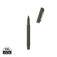 Elegáns és modern toll az optimális, kényelmes írásélményért. RCS újrahasznosított rozsdamentes acélból készült. Kényelmes fogást biztosító gumibevonatú valamint matt felülettel. A különálló kupakkal és zsebklipsszel egyszerre kínál funkcionalitást és eleganciát. A vékony hegy (1,0 mm) biztosítja az egyenletes írást míg kényelmes súlya stabilitást biztosít a könnyed íráshoz. Golyóstollal és Dokumental kék tintával valamint 1200 méteres íráskapacitással tökéletesen megfelel minden írásigénynek. Az RCS (Recycled Claim Standard) tanúsítvány garantálja az újrahasznosított anyagok ellátási láncát. A teljes újrahasznosított anyagtartalom a termék összsúlyán alapul. 76% RSC újrahasznosított rozsdamentes acélt tartalmaz.
