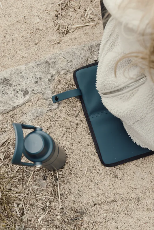 Kültéri pillanatokhoz. A 4 paneles kialakítás megkönnyíti a hajtogatást és a szállítást, míg a vízálló PEVA hátsó réteg megvéd a nedvességtől és a hidegtől. Kényelmes snap pánttal, amellyel közvetlenül a táskához rögzíthető. Mérete 40x30 cm. Az RCS (Recycled Claim Standard) tanúsítvány garantálja az újrahasznosított anyagok ellátási láncát. A teljes újrahasznosított anyagtartalom a termék összsúlyán alapul. 24% RCS újrahasznosított poliésztert tartalmaz.