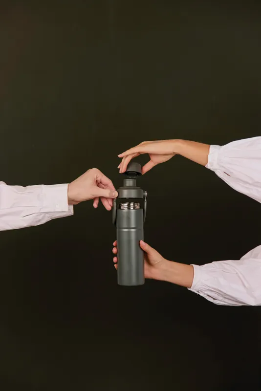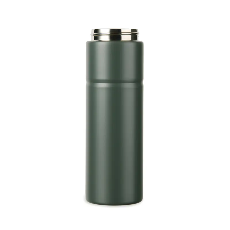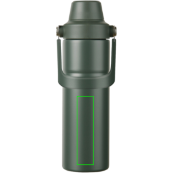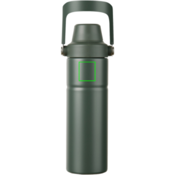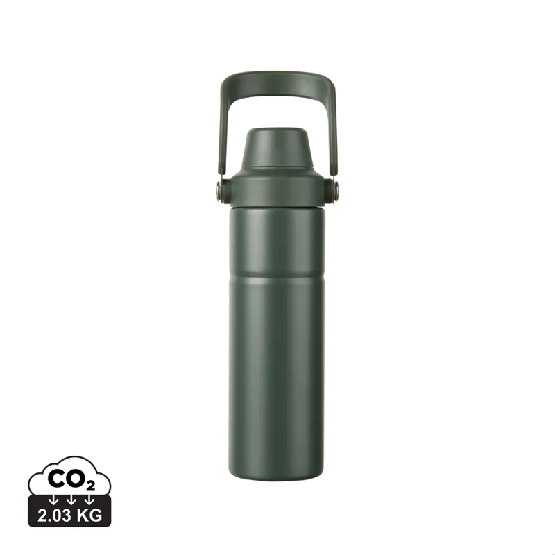 Modern és tartós, újrahasznosított rozsdamentes acélból készült duplafalú vákuumpalack. A praktikus fogantyúval ellátott palack ideális a kalandokhoz. A fedél két nyílással rendelkezik: egy kortyolós felső rész a könnyű hozzáféréshez és egy nagyobb nyílás a könnyed utántöltéshez és a könnyű tisztításhoz. A duplafalú szigetelés akár 12 órán keresztül hidegen, 4 órán keresztül pedig melegen tartja az italt. Mosogatógépben nem mosható vagy mikrohullámú sütőben nem használható, kizárólag kézzel mosható. Az RCS (Recycled Claim Standard) tanúsítvány garantálja az újrahasznosított anyagok ellátási láncát. A teljes újrahasznosított anyagtartalom a termék összsúlyán alapul. 65% RSC újrahasznosított rozsdamentes acélt tartalmaz.