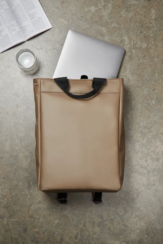 Visszafogott és exkluzív hátizsák, letisztult dizájn és exkluzív megjelenés. Párnázott rekesszel a számítógépnek a fokozott védelem érdekében. Hordható táskaként vagy hátizsákként így bármilyen helyzetben sokoldalú és kényelmes. A hátizsák külseje újrahasznosított PU-ból, belső bélése pedig újrahasznosított anyagokból készül. 35% RCS (Recycled Claim Standard) újrahasznosított anyagokból készült, biztosítva a felhasznált újrahasznosított anyagok ellátási láncát. A teljes újrahasznosított anyagtartalom a termék összsúlyán alapul. 27% RCS-tanúsított, újrahasznosított poliészter valamint 8% RCS-tanúsított, újrahasznosított PU.17"-es méretű laptopok számára. Kérjük vegye figyelembe, hogy a laptop képernyőjének mérete nem azonos a laptop teljes méretével.
