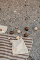 A pontosság játéka és minden korosztály számára megfelel. Minden alkalomra és szinte mindenhol alkalmas, például strandon, kertben vagy sok más szabadtéri helyen. Játszható egyénileg vagy csapatban, a szabályok nagyon egyszerűek, a kis célgolyóhoz legközelebb eső nyer. 6 golyót, 1 kis célgolyót és egy mérőeszközt tartalmaz. Pamuttáskában, amelynek hátoldala hálós, így könnyen hordozható. Kézikönyv mellékelve. Minden fa alkotóelem kiváló minőségű FSC® fenyőfából készült, biztosítva, hogy a fa felelősen kezelt erdőkből származik. Golyók átmérője: 6,5 cm.