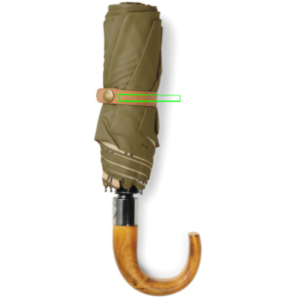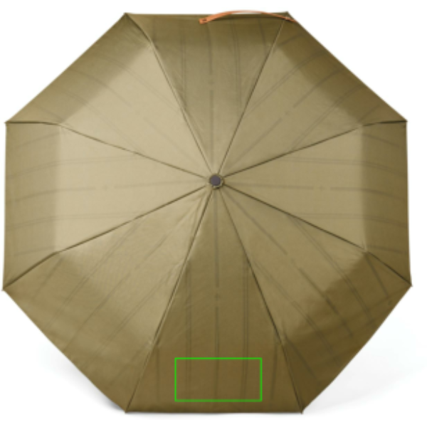 Stílusos, klasszikus és visszafogott, 21"-es esernyő. A kétrétegű 190T újrahasznosított PET szövet megfelelő védelmet nyújt az eső ellen, míg a klassz belső bélés eleganciát ad a dizájnhoz. Üvegszálas bordákkal és kerettel, amelyek tartósságot és hosszú élettartamot biztosítanak. Az esernyő fogantyúja kompozit fából készül, kifinomultságot adva a dizájnhoz. A kényelem érdekében automatikus nyitás és kézi zárási lehetőség. A hozzáillő szövetből készült tárolótasak extra védelmet biztosít ha nincs használatban. AWARE™ nyomjelző technológiával amely igazolja az újrahasznosított anyagok valódi használatát, hangsúlyozva elkötelezettségünket a felelős beszerzés iránt. FSC® kraft csomagolásban.